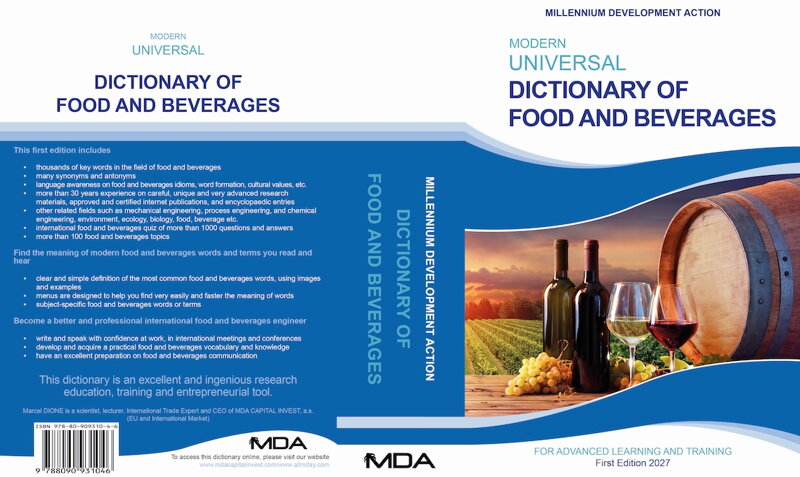 The cover page of the Modern Universal Dictionary of Food & Beverages is designed by the Graphic Designer, Marketa Vabroušková, a professional in design and visual communication, with her primary focus on transforming linguistic messages into graphic manifestations, whether tangible or intangible. This MUD of Energy is published in two formats (electronic publishing and paper publishing) to satisfactorily meet all your needs in Food & Beverages and allied industries.