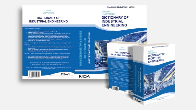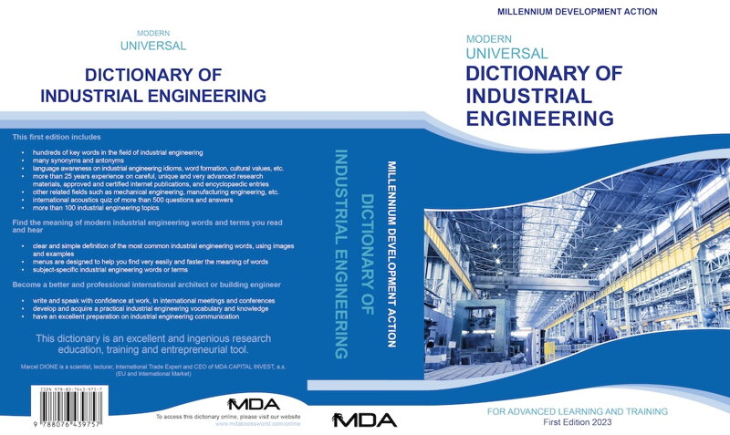 The cover page of the Modern Universal Dictionary of Industrial Engineering is designed by Marketa Vabroušková, a professional in design and visual communication, with her primary focus on transforming linguistic messages into graphic manifestations, whether tangible or intangible. This MUD of High-Tech is published in two formats (electronic publishing and paper publishing) to satisfactorily meet all your needs in Industrial Engineering and allied industries.