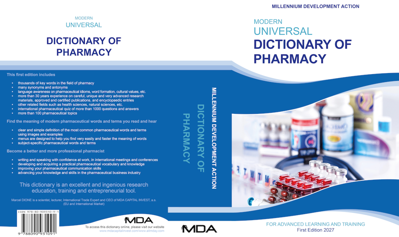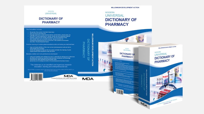 The cover page of the Modern Universal Dictionary of Pharmacy is designed by the Marketa Vabroušková, a professional in graphic design and visual communication, with her primary focus on transforming linguistic messages into graphic manifestations, whether tangible or intangible. This dictionary is published in two formats (electronic publishing and paper publishing) to satisfactorily meet all your needs in pharmaceutical industry and allied industries.